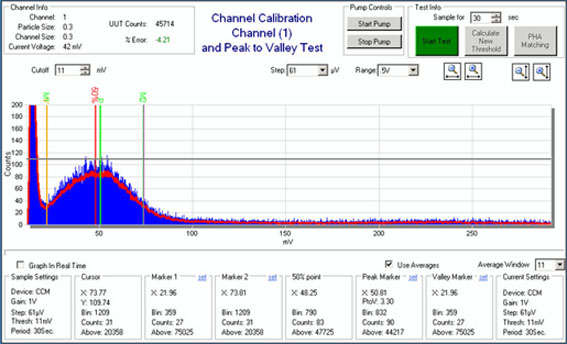 Referans cihaz ile karşılaştırılmalı olarak yapılan %50 ve %100 sayım verimliliği testleri ile cihazın sadece boyutsal kalibrasyonu değil, partikül sayısı olarak da kalibrasyonu yapılmaktadır.